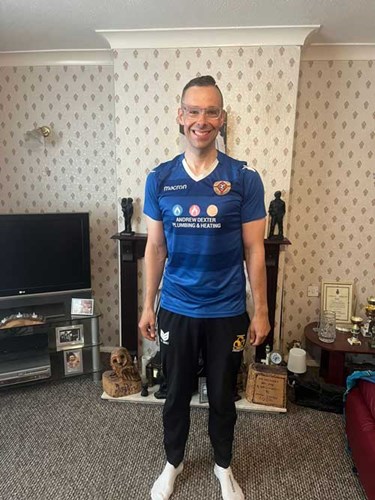 The smile on Andrew’s face said it all and he couldnt thank us enough for this small but mighty gesture. We have since recieved a message with a photo of Andrew proudly wearing the shirt after completing an eight-mile run in just over 71 minutes. He wrote: